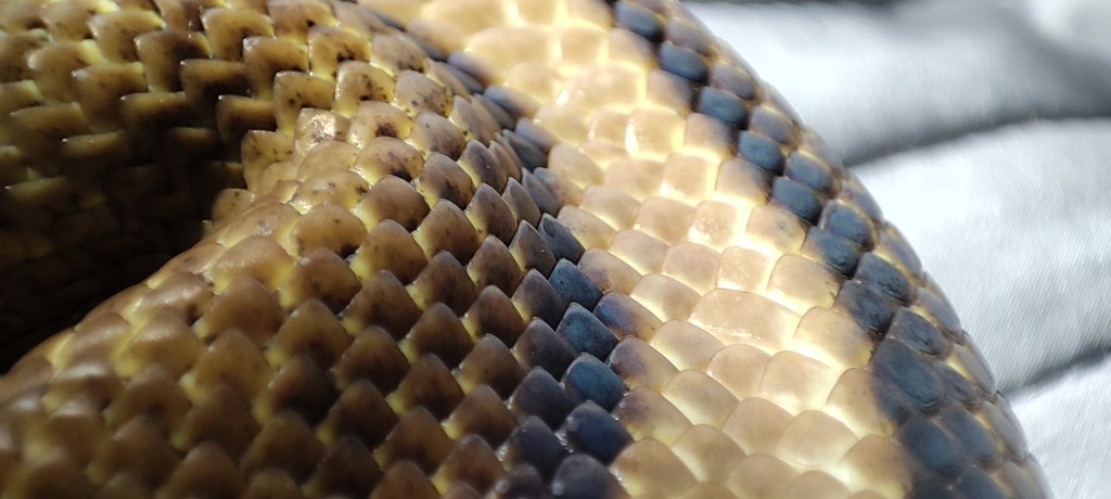 Suomut ovat limittäin käärmeen nahassa kiinni. Selän puolella suomut ovat teräväkärkisiä ja vatsan puolella vaakatasossa ja pitkiä.